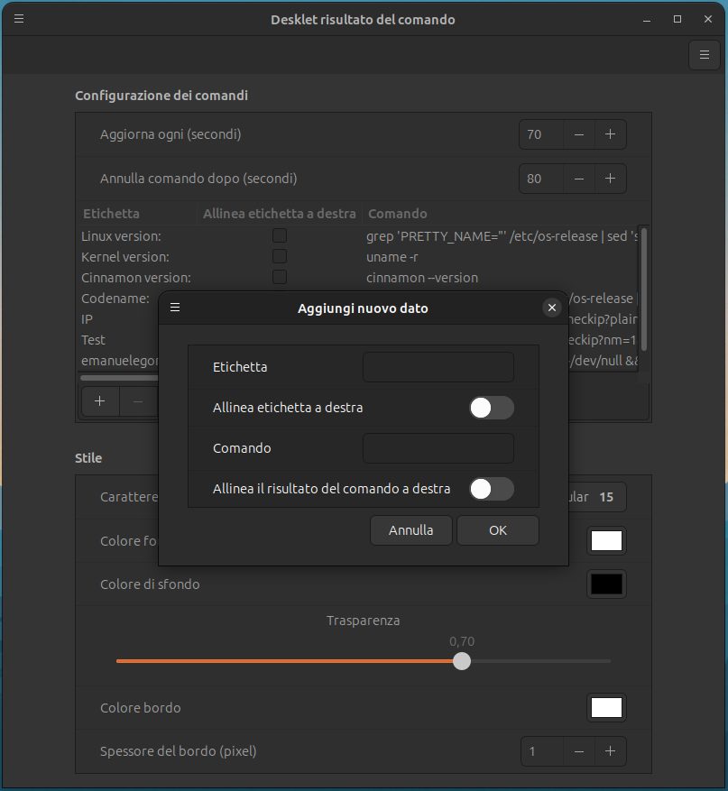 Command result desklet: informazioni di sistema sempre visibili su Linux desktop Cinnamon