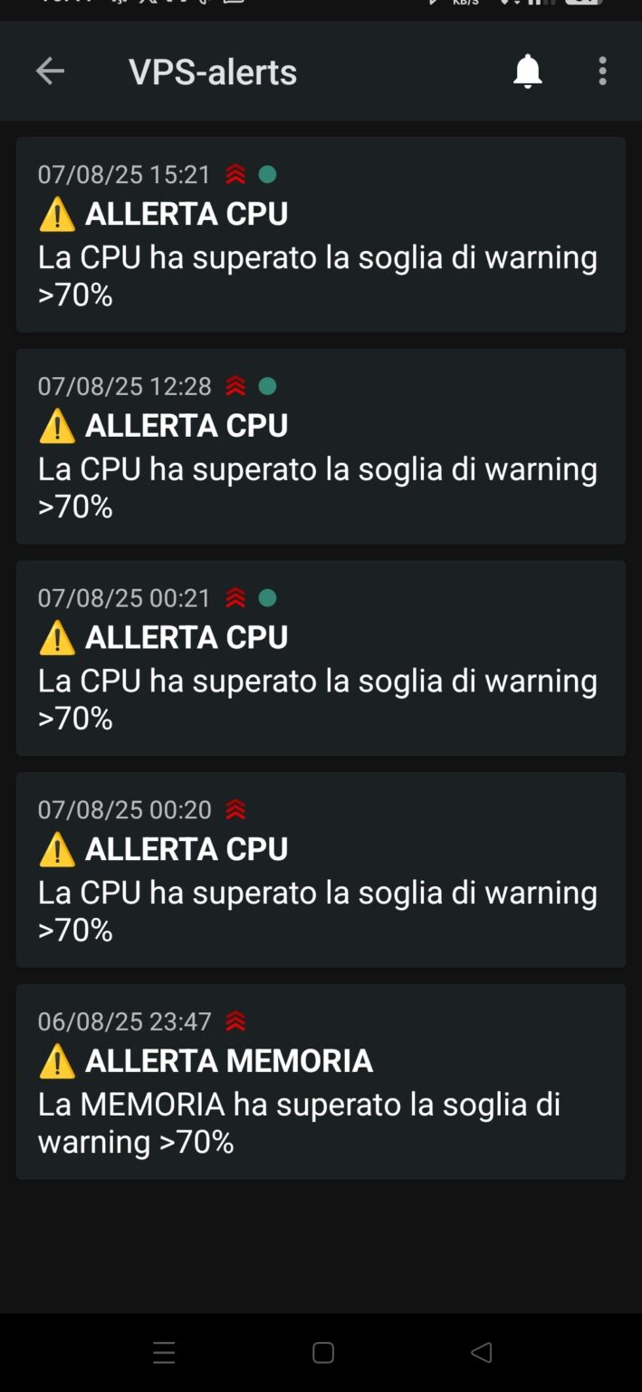 Per esigenze più avanzate, ho configurato Glances in modo da lanciare script personalizzati quando vengono superate determinate soglie, come carico CPU elevato, RAM quasi satura o spazio disco critico. Questi eventi generano notifiche push inviate tramite un server ntfy